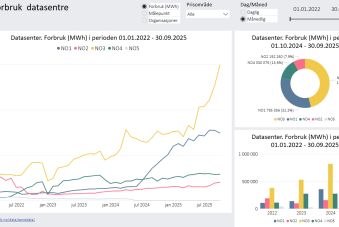 På denne siden finner du visninger som gir oversikt over energibruk i virksomheter i Trøndelag. Tallene bygger på data rapportert til Norske utslipp. Datagrunnlaget er utviklet for utslippsstatistikk og dekker ikke alle virksomheter. Statistikken viser derfor kun et utvalg rapporteringspliktige virksomheter, og gir ikke et fullstendig bilde av energibruken i hele næringslivet i regionen.